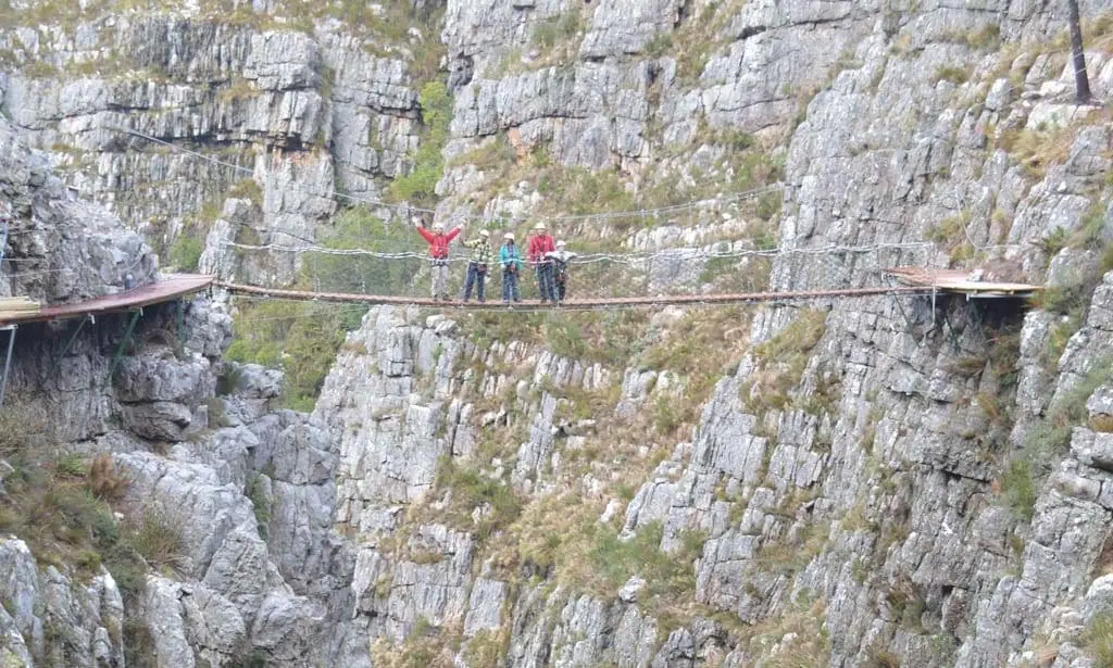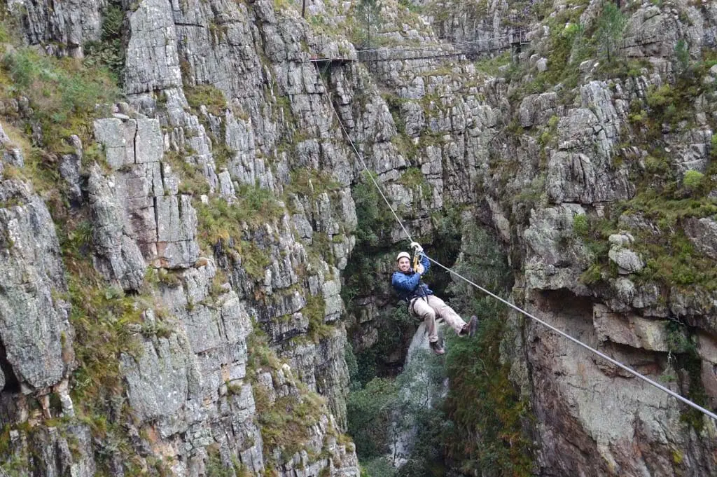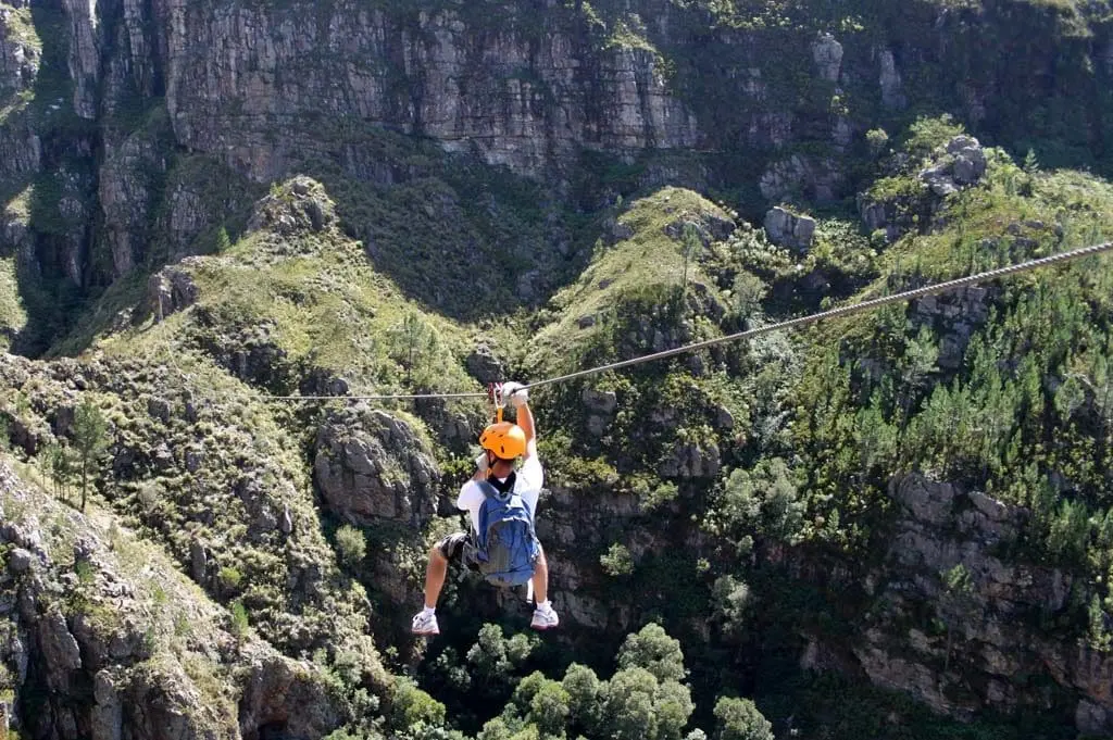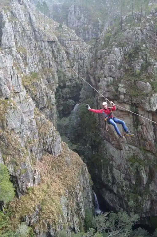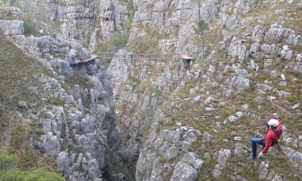 This international award winning tour, consists of eleven thrilling zipline slides, some over 300m long, each ending on a platform constructed on the cliffs and fynbos-covered mountain slopes above the Riviersonderend Gorge. A unique suspension bridge between a narrow sandstone ravine high above a spectacular double waterfall is guaranteed to be one of the unforgettable highlights of the tour.