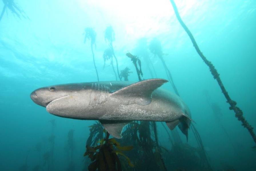 Look down upon the gently swaying canopy of kelp fronds provides protection for a vast array of marine creatures in the understorey. Schools of strepies, stump nose, red Roman, fransmadam, jut-jaws, stumpnose, janbruin and bronze bream shelter in the protective forests. The mesmerizing swaying of the kelp stems is a visual treat in itself – it truly feels as though you are swimming through a forest and is why it has earned the name “Great African Kelp Forests” Aside from the giant kelp, there are other kelp species such as the split fan kelp which grow under the giant kelp stems.